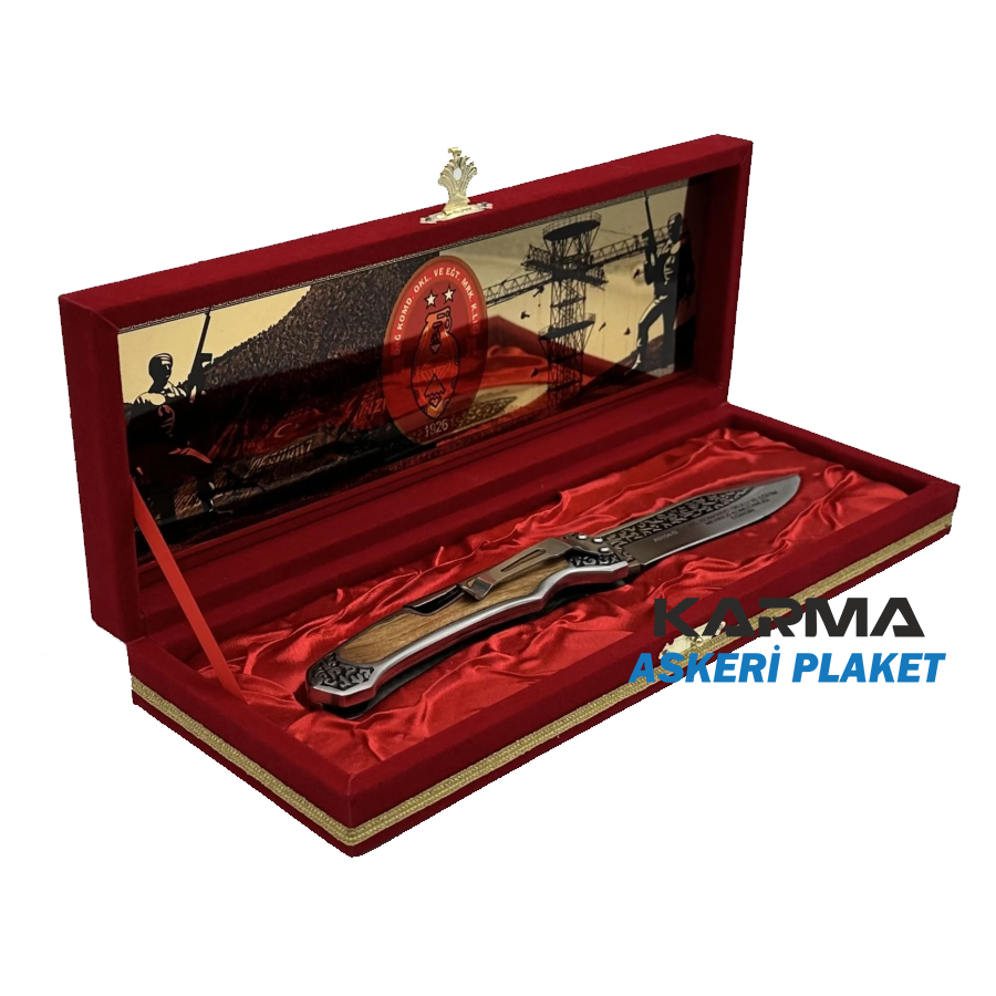 Kadife Kutulu Çakı Hediyelik Hizmet Anısı Plaket