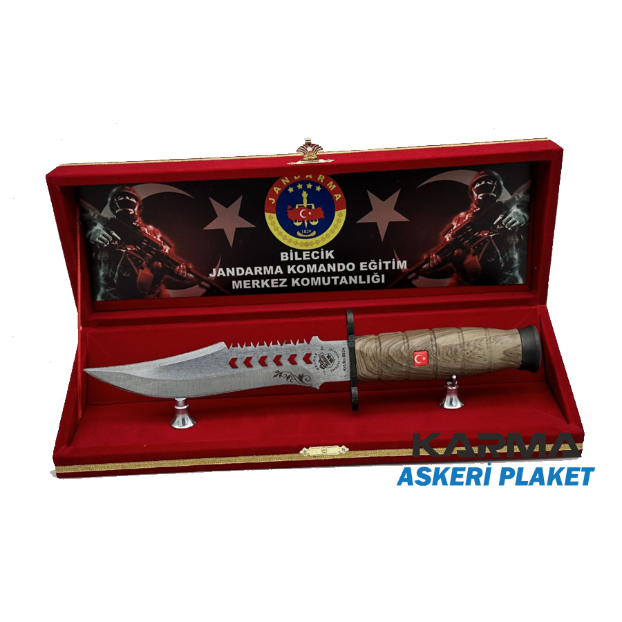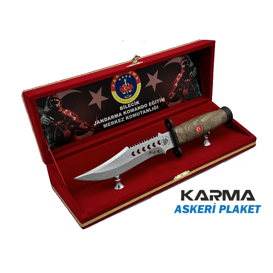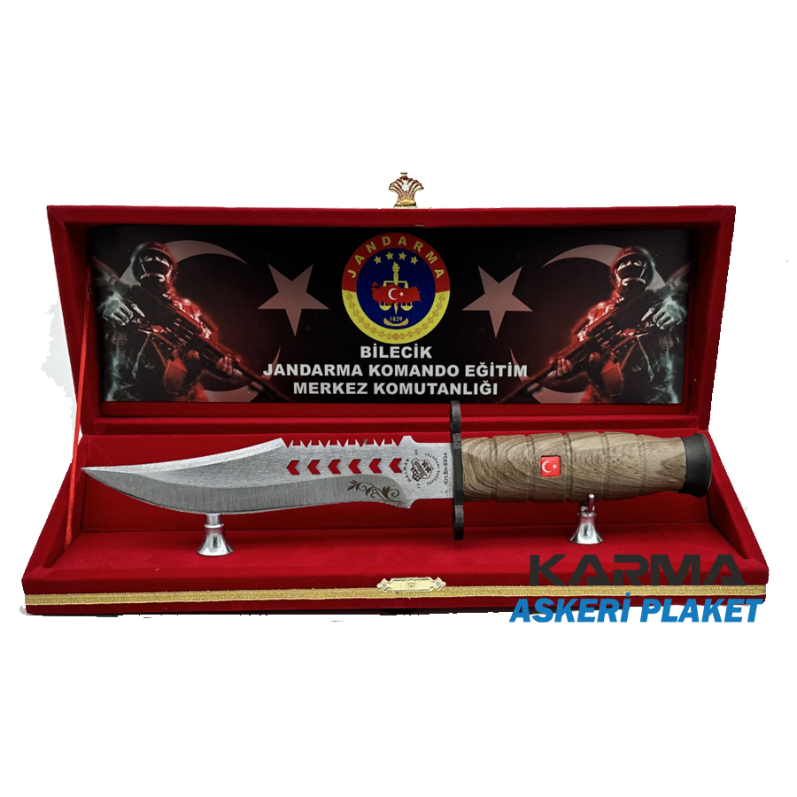 Özel misafirleriniz, yöneticileriniz, müşterileriniz için kişiye özel tasarlanabilen jandarma, uzman, komando piyade bıçakları özel olarak üretilen kadife kutuda.