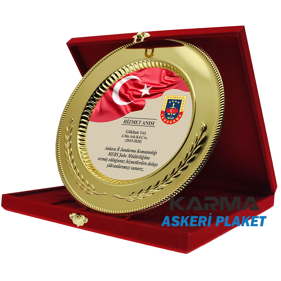 Kadife Kutulu Jandarma Hizmet Anısı Askeri Tabak Plaket