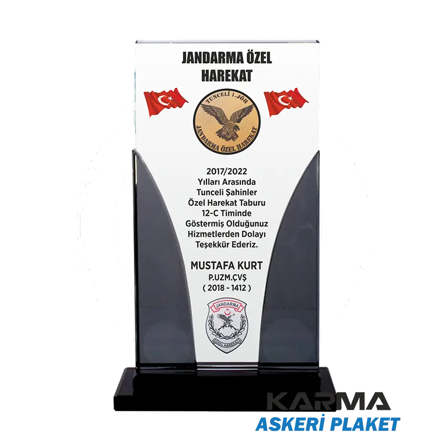 Kristal Cam Jandarma Komando Hizmet Anısı Askeri Plaket